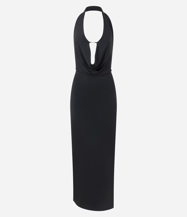 Vestido New Midi com Decote Profundo e Aviamento Preto