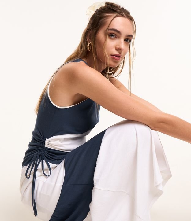 Vestido New Midi em Algodão com Ombro Só e Blocos de Cor