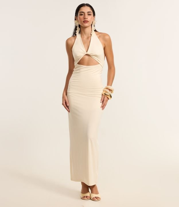 Vestido new midi frente única com torcidinho no busto, confeccionado em jersey e com recorte vazado.