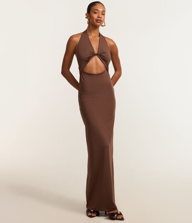Vestido new midi frente única com torcidinho no busto, confeccionado em jersey e com recorte vazado.