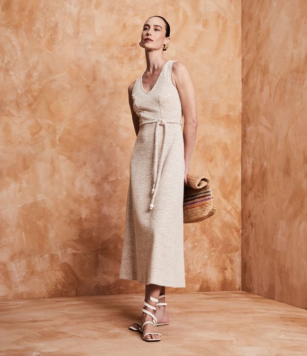 Vestido New Midi em Malha Texturizada com Cinto Corda Forrado