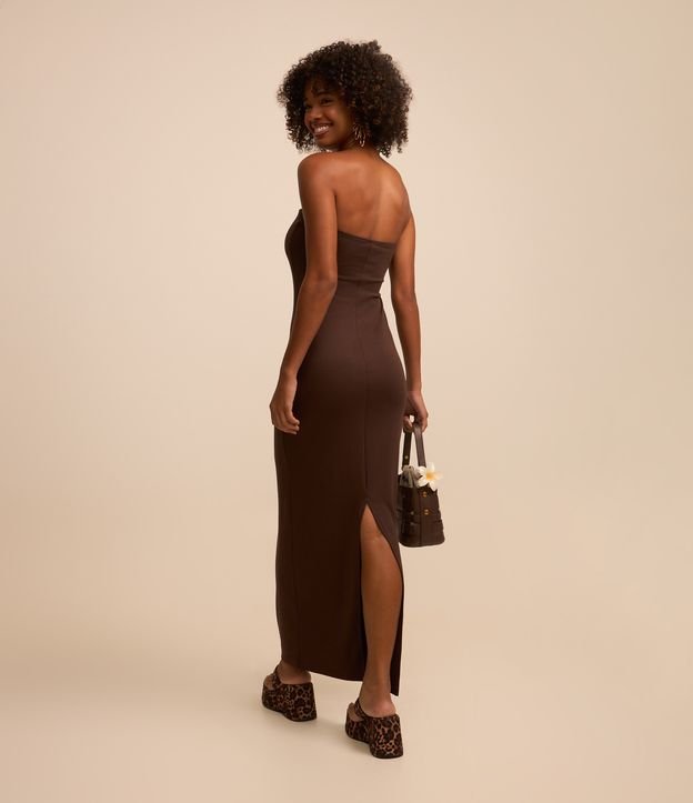 Vestido New Midi em Ponto Roma e Decote Tomara que Caia