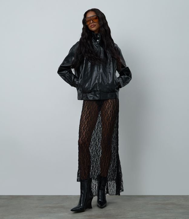 Vestido New Midi em Renda e Aplicação de Pedrarias Preto