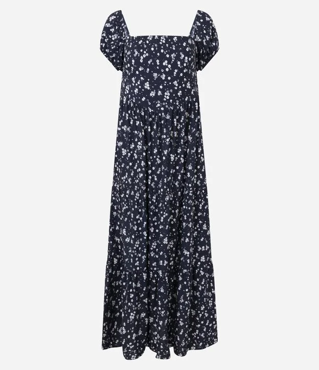 Vestido New Midi em Viscose com Estampa Floral Azul