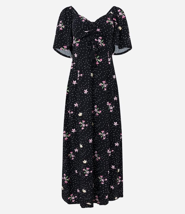 Vestido New Midi em Viscose Floral Liberty e Puxadinho no Busto
