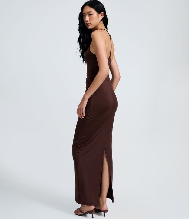 Vestido New Midi Justinho em Microfibra com Gola Halter Marrom
