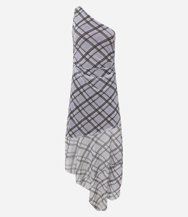 Vestido Ombro Único Assimétrico em Tule Xadrez