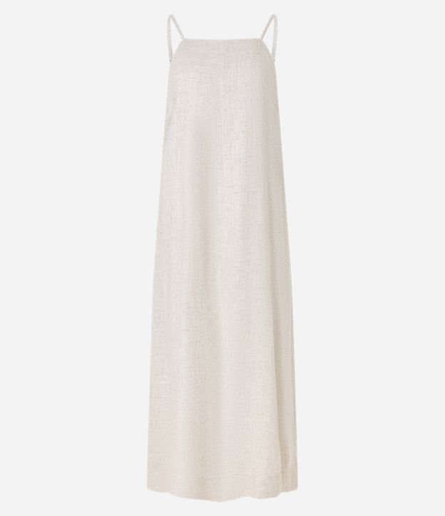 Vestido Reto Midi em Viscolinho com Decote Halter Bege