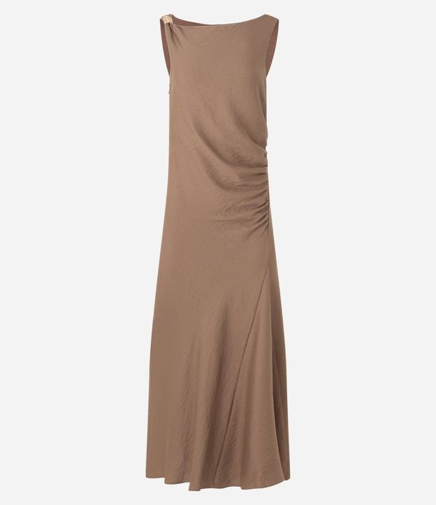 Vestido Reto Midi em Viscose com Ajuste Metálico na Alça