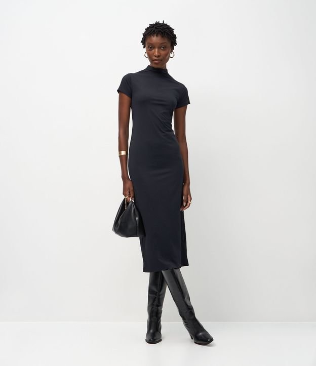 Vestido Tubinho Básico com Gola Alta e Fenda Traseira Preto