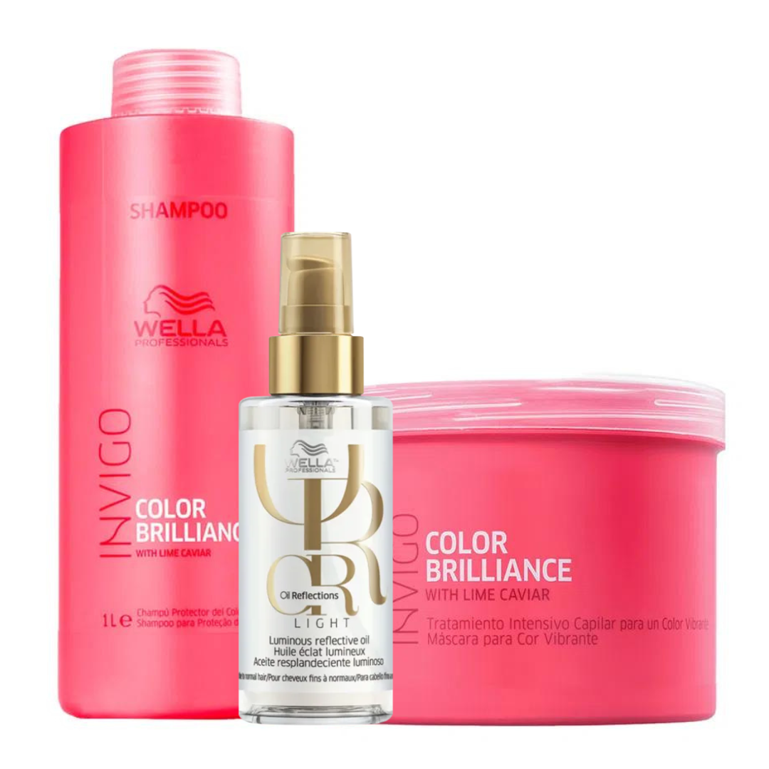 Wella Color Brilliance Shampoo 1000ml + Mascara 500ml + Óleo Light 100ml