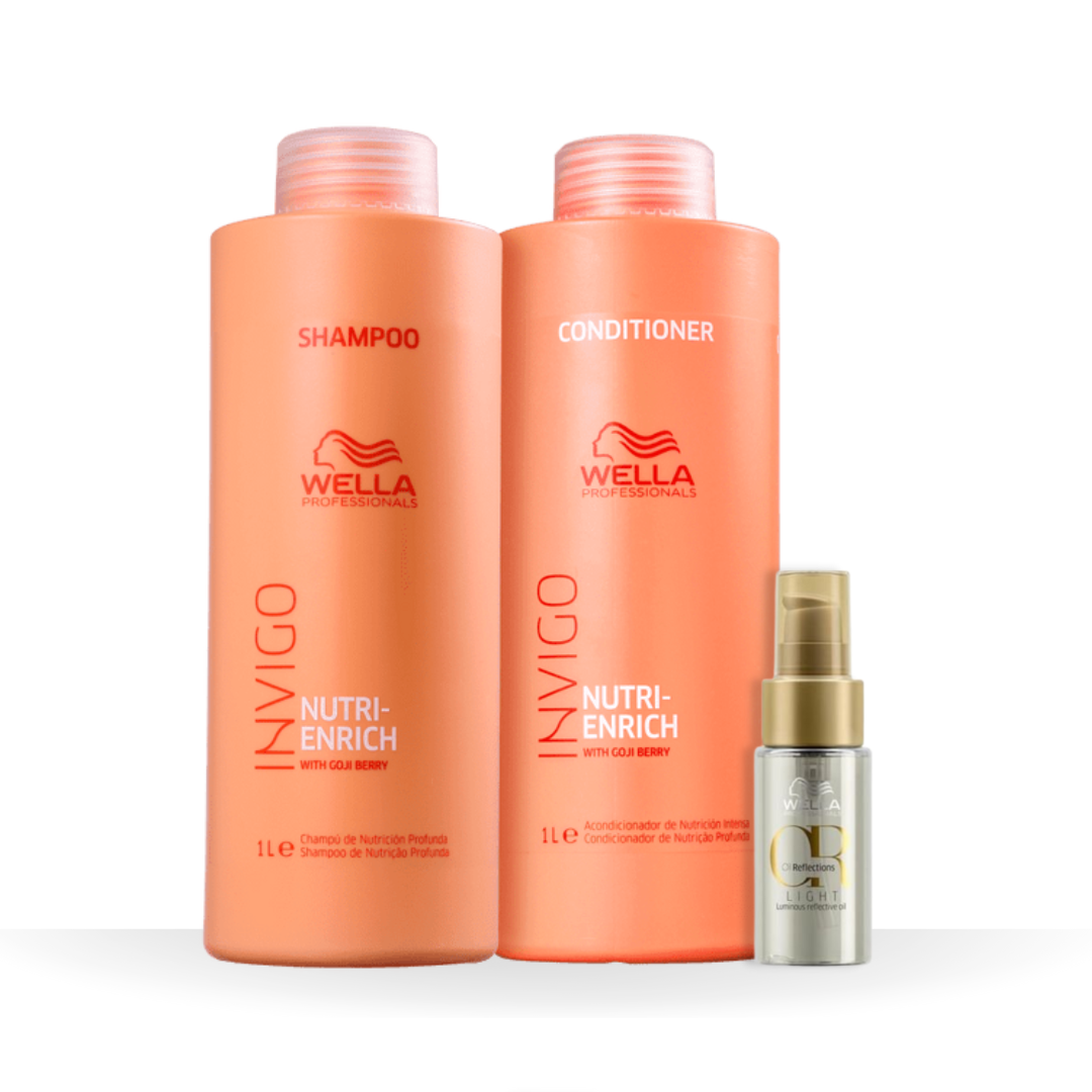 Wella Nutri-Enrich Shampoo 1000ml + Condicionador 1000ml + Óleo Light 30ml